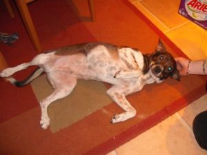 Da unten ging es mir nicht so gut, ich war ein Straßenhund und bin dem Tod nur entronnen, weil mich Tierschützer eingefangen haben und in eine Auffangstation gebracht haben.